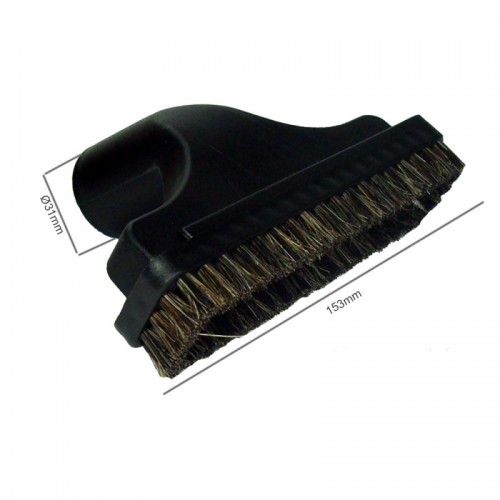• Este cepillo puede instalarse en cualquier toma normalizada de aspiración centralizada, su boca tiene un diámetro de 31 mm y la zona de aspiración cuenta con 153mm de lo longitud, todo el perfil del cepillo cuenta con un tupido conjunto de delicadas cerdas, para poder ajustarse y limpiar en profundidad, todo tipo de tapicerías, telas, sofás, alfombras, sin dañar las mismas.